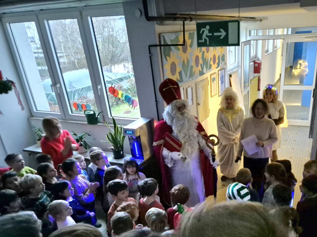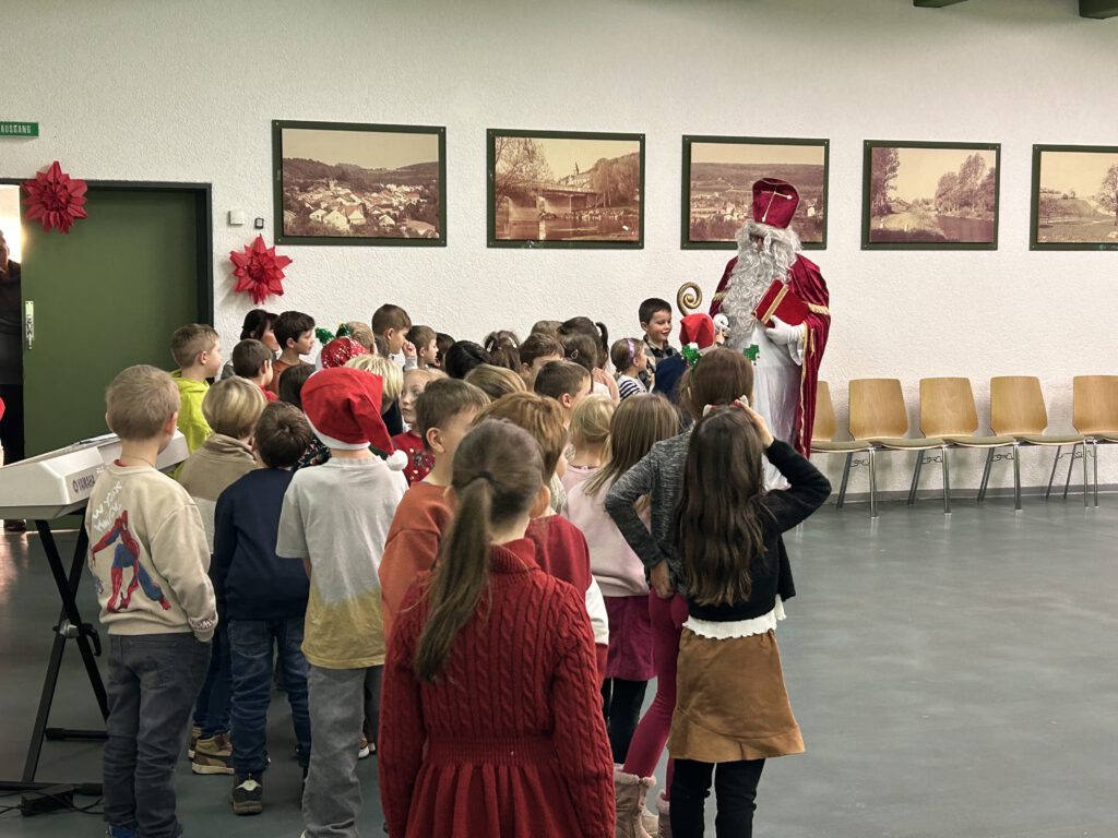 Morgens begrüßten alle Kinder den Nikolaus mit zwei schönen Nikolausliedern beim Adventssingen.