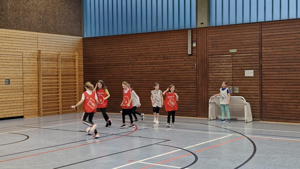 Nacheinander hatten die Mädchen der vier Klassenstufen in einer Schulstunde Zeit, Übungen zum Fußball auszuprobieren und somit diese Sportart auch selbst einmal auszuführen.