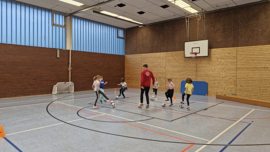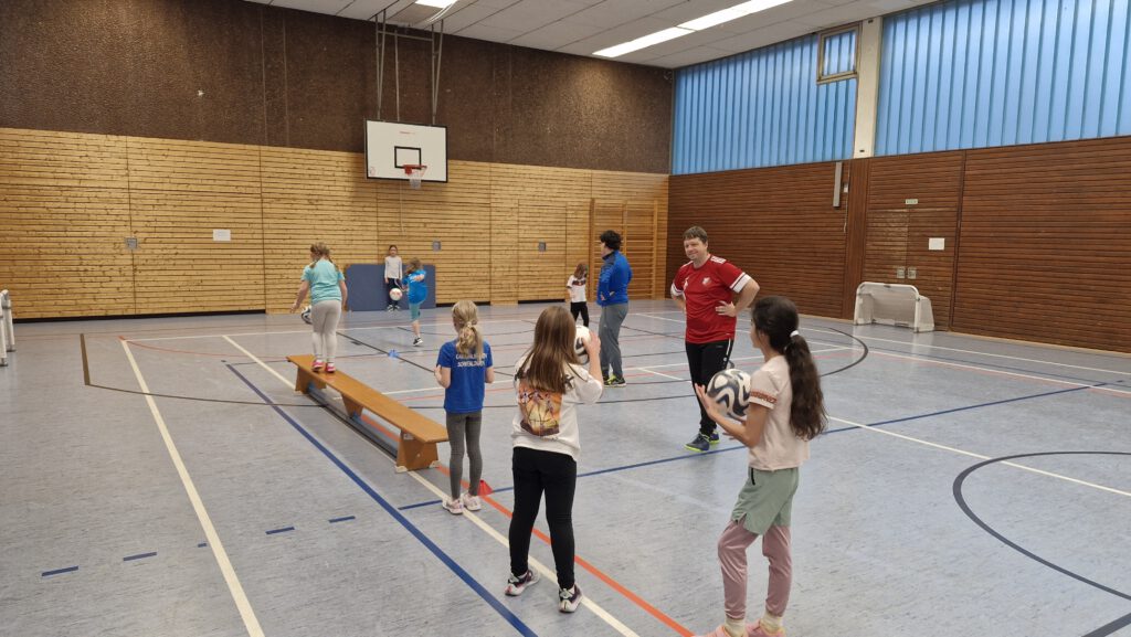 Am Freitag, den 16. Januar, gab es für unsere Mädchen eine Schnupperstunde „Fußball“. Dominic Fries vom Fußballverein in Hemmersdorf kam in die Schule und hatte einen Vertreter des Saarländischen Fußballverbandes und den Trainer der U19-Mannschaft des 1. FC Saarbrücken dabei.